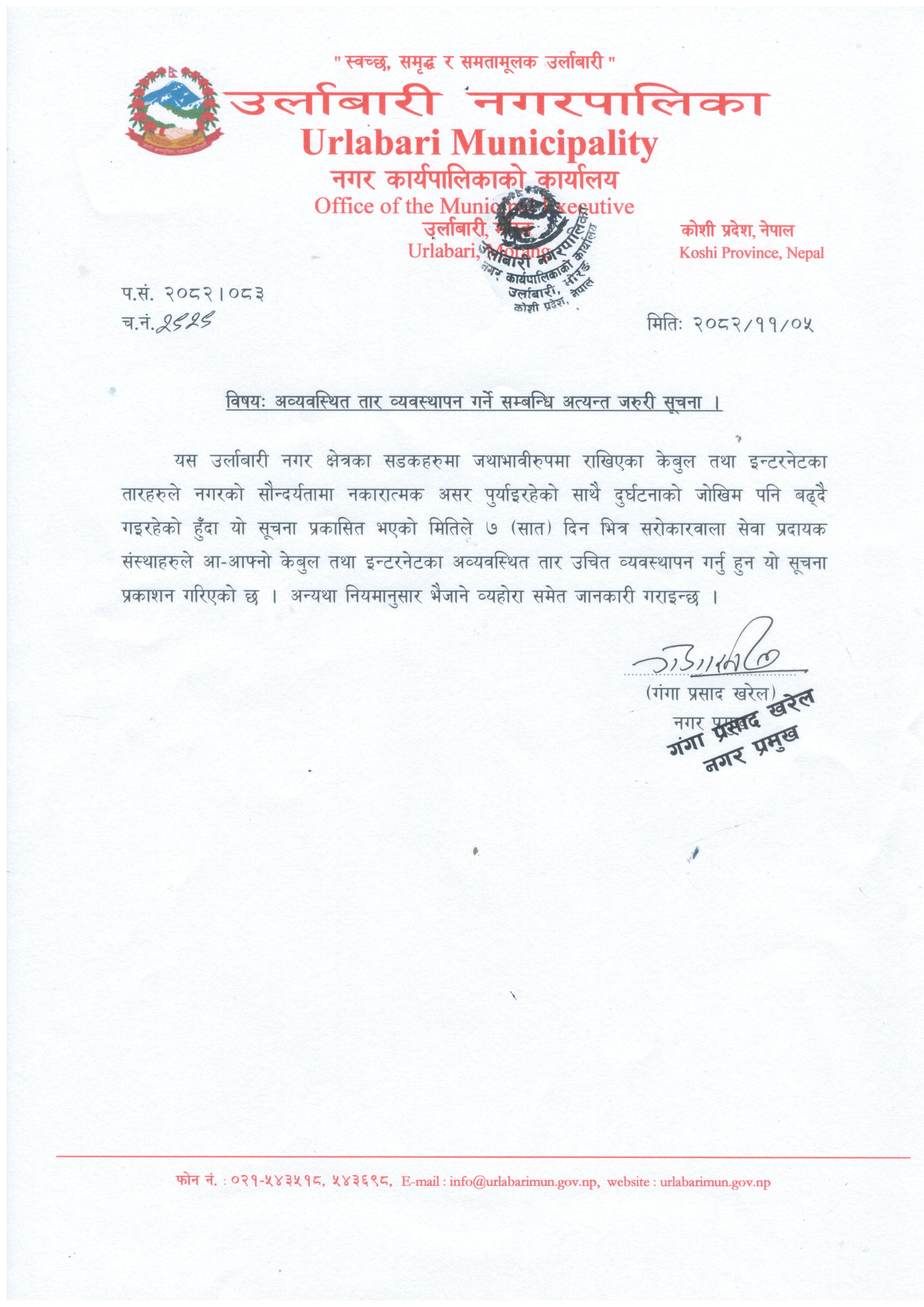 अव्यवस्थित तार व्यवस्थापन गर्ने सम्बन्धि अत्यन्त जरुरी सूचना ।