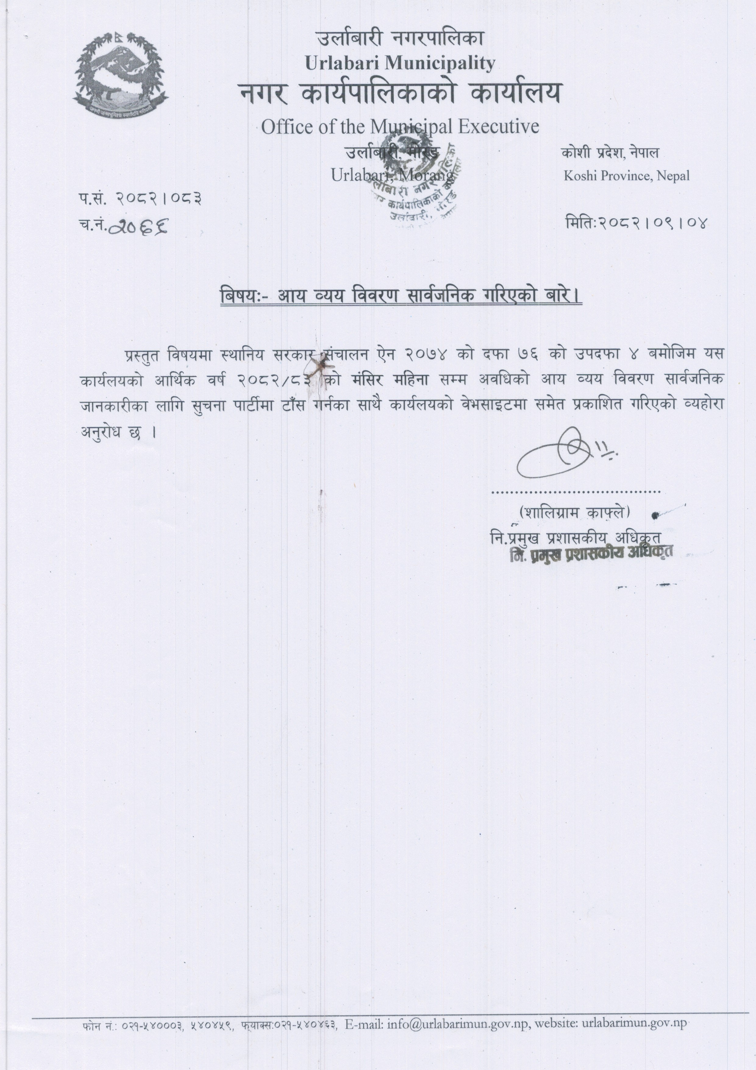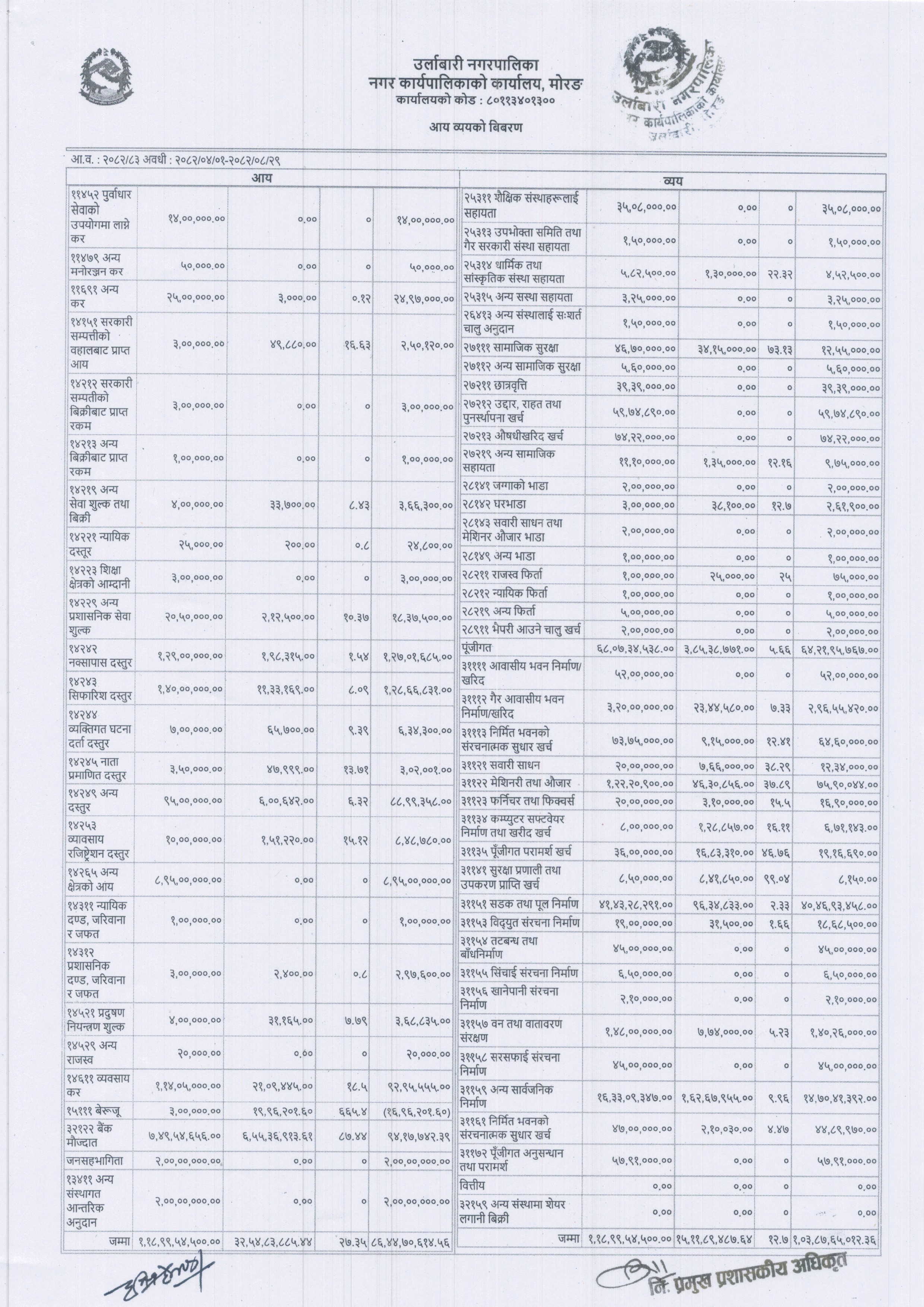 उर्लाबारी नगरपालिका आ.व. २०८२/०८३ को रातो किताव