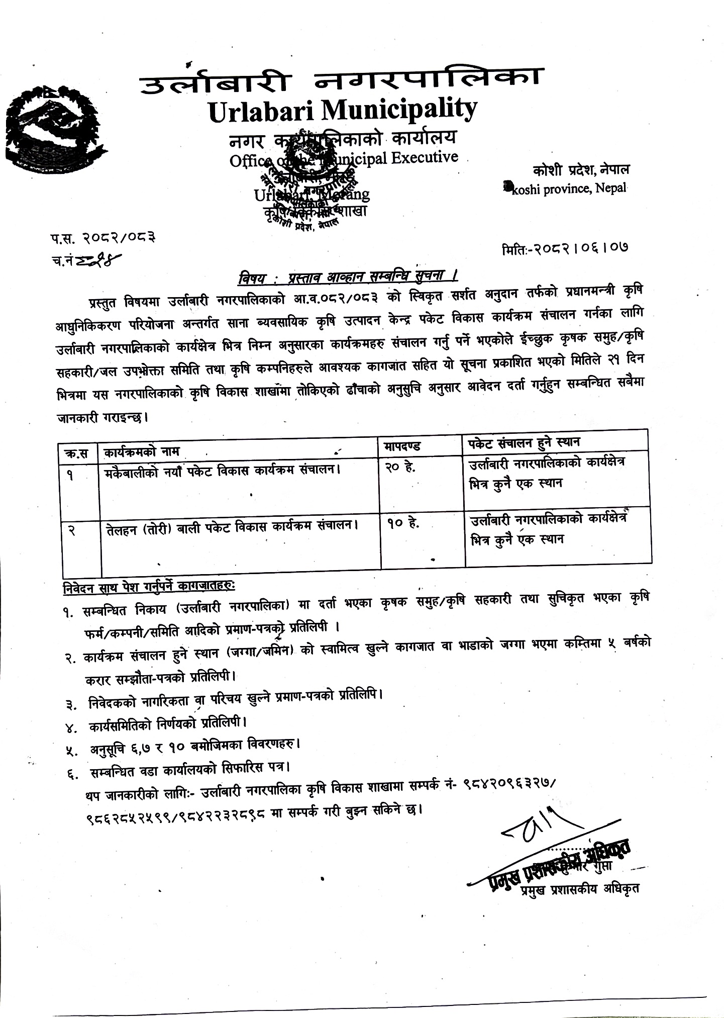 उर्लाबारी नगरपालिकाको आ .व. २०८२/०८३ को योजना तथा कार्यक्रमहरु