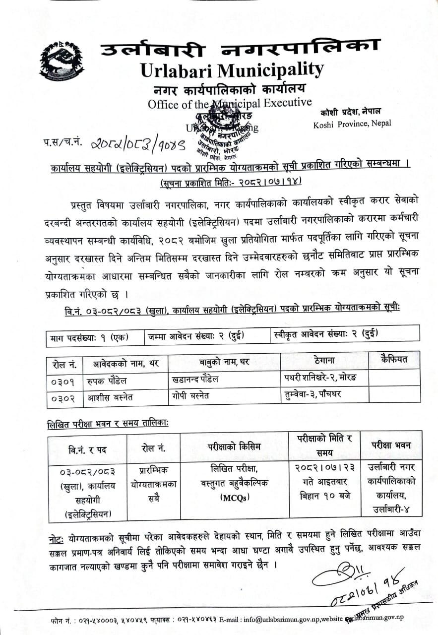 उर्लाबारी नगरपालिका, नगर कार्यपालिकाको कार्यालय