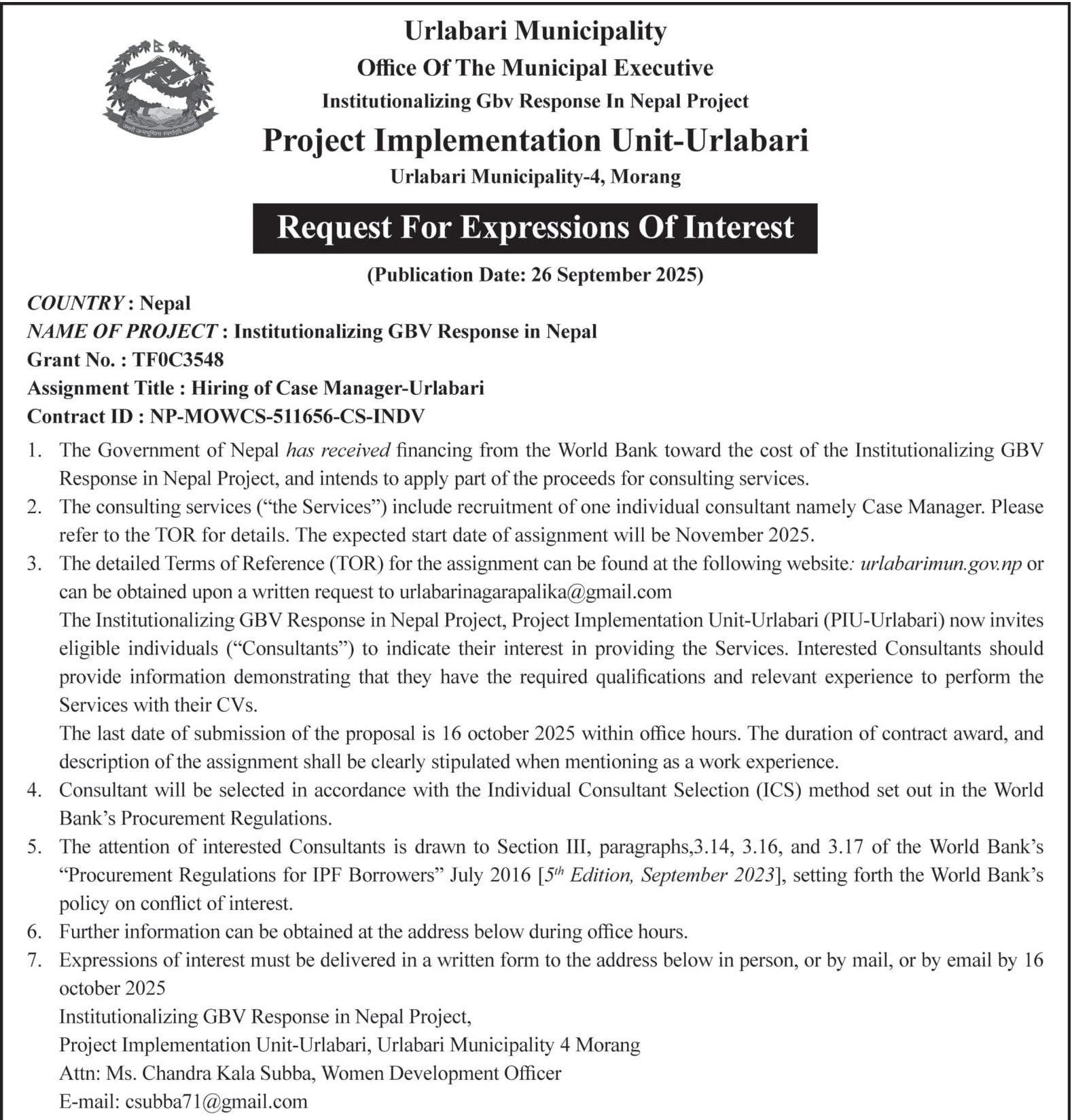 उर्लाबारी नगरपालिकाको आ .व. २०८२/०८३ को योजना तथा कार्यक्रमहरु