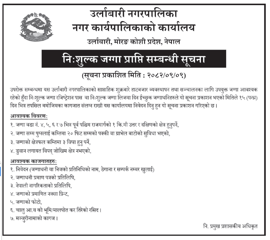 उर्लाबारी नगरपालिका आ.व. २०८२/०८३ को रातो किताव