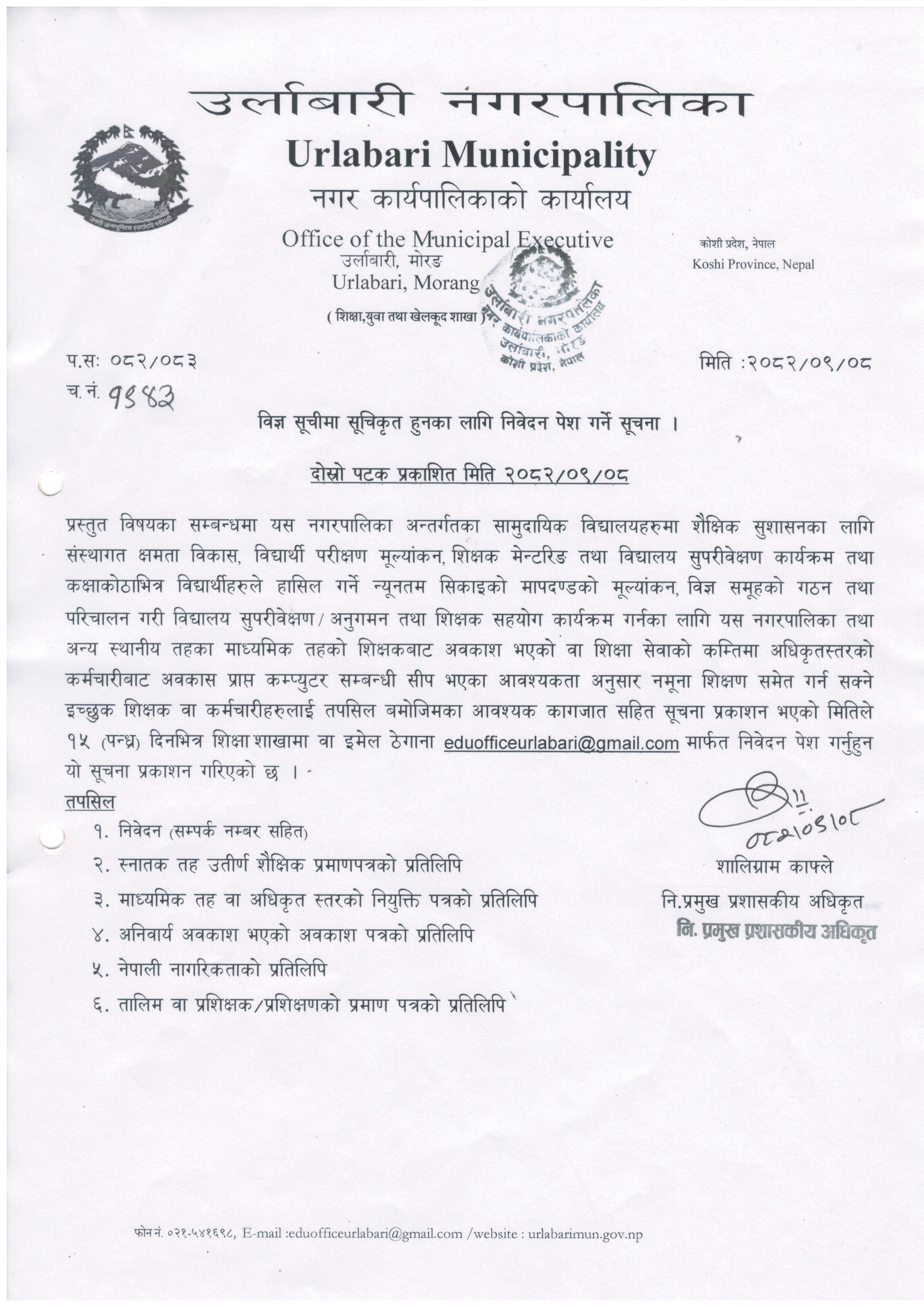 उर्लाबारी नगरपालिकाको आ .व. २०८२/०८३ को योजना तथा कार्यक्रमहरु