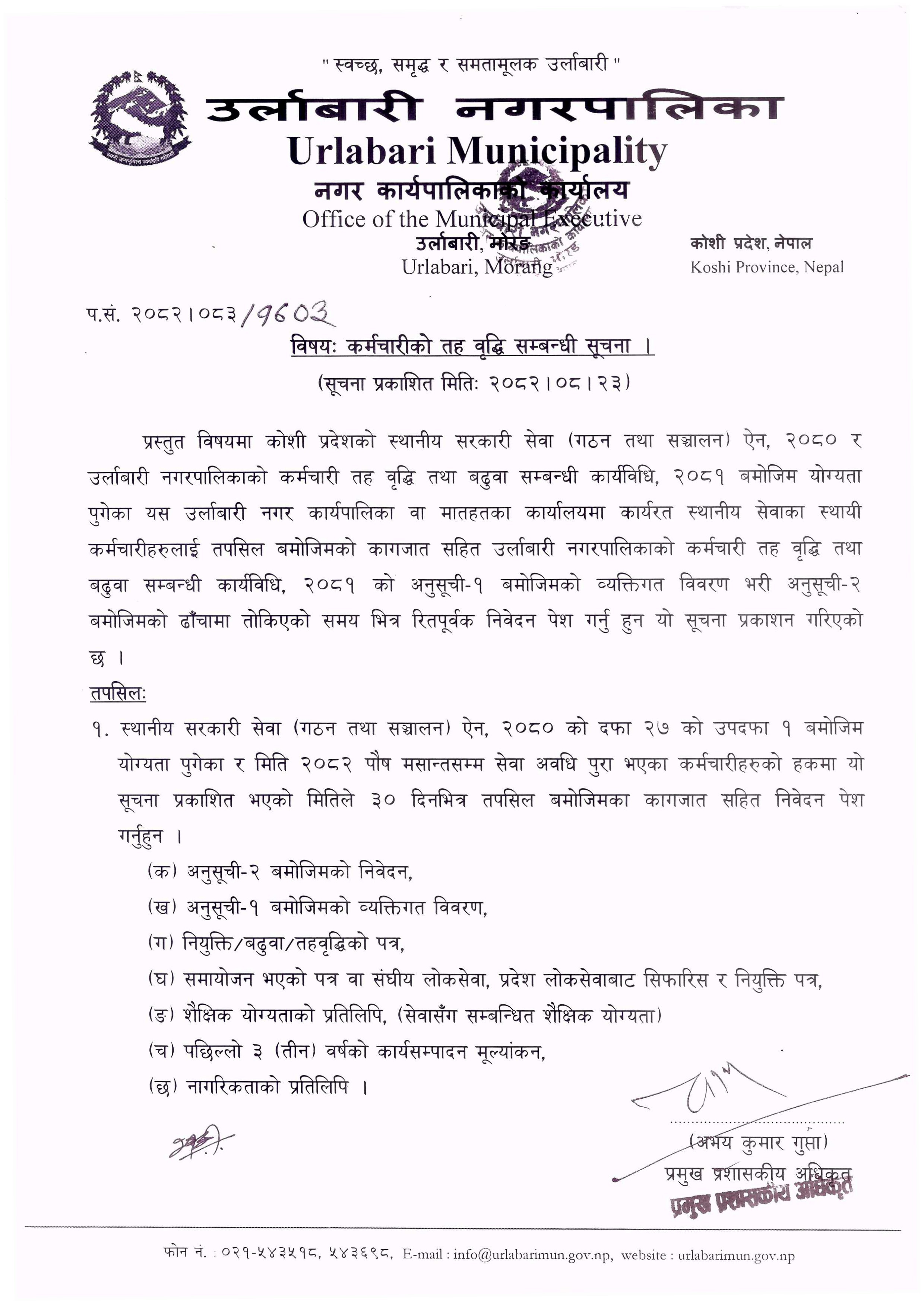 कर्मचारीको तह वृद्धि सम्बन्धी सूचना ।