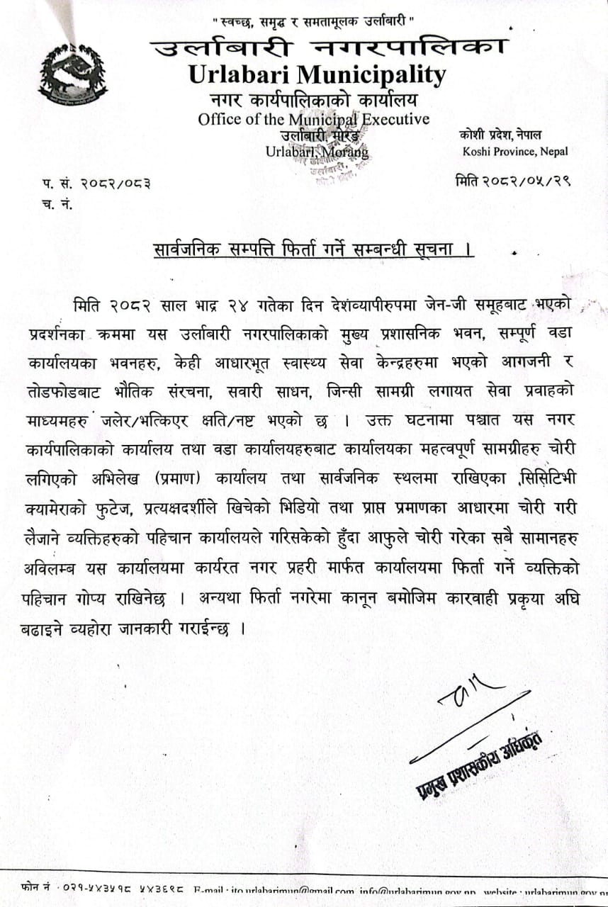 उर्लाबारी नगरपालिकाको आ .व. २०८२/०८३ को योजना तथा कार्यक्रमहरु