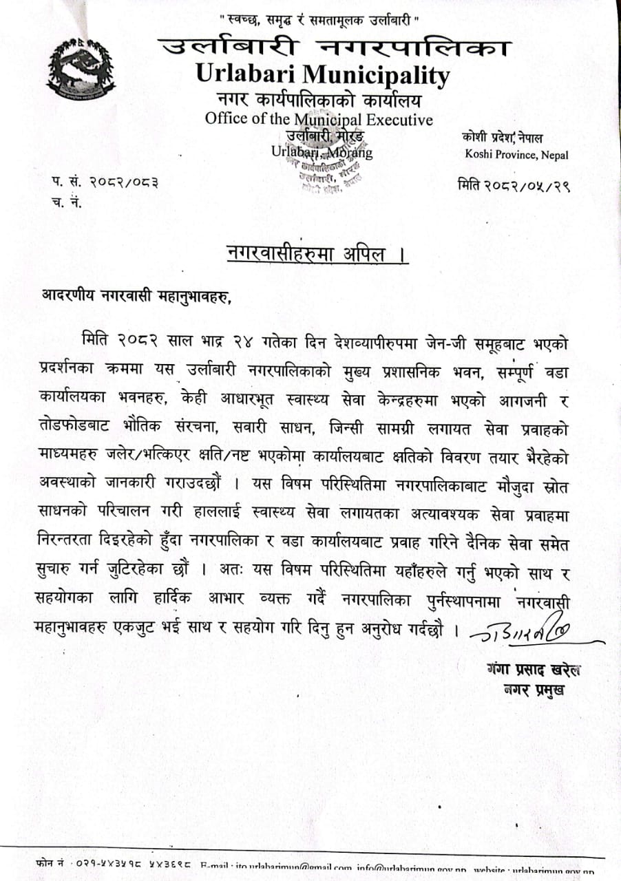उर्लाबारी नगरपालिकाको नगर सभाको १४ औं अधिवेशनको पहिलो बैठकमा पेश भएको आर्थिक बर्ष २०८२/०८३ बार्षिक नीति तथा कार्यक्रम: