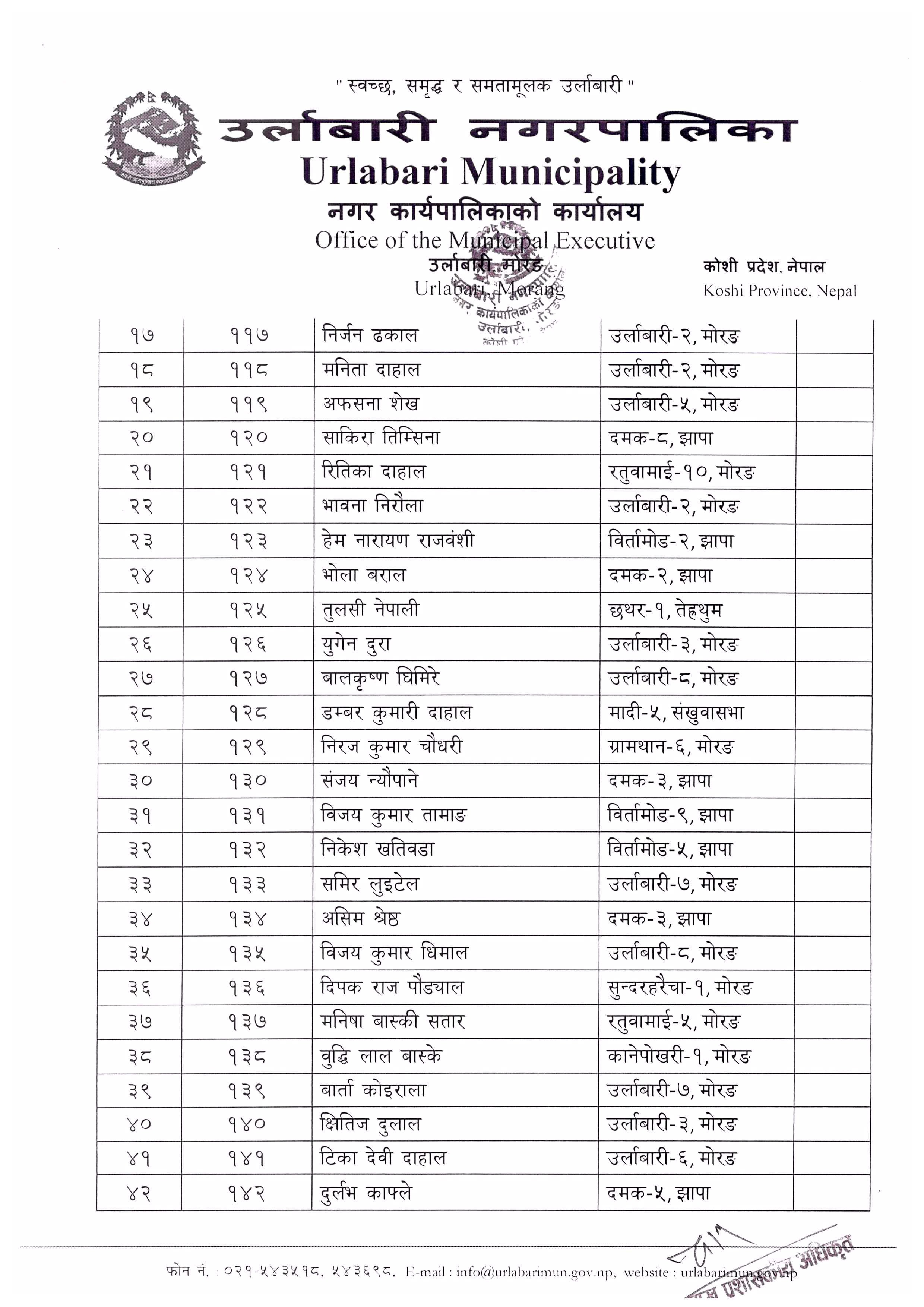 उर्लाबारी नगरपालिका आ.व. २०८२/०८३ को रातो किताव