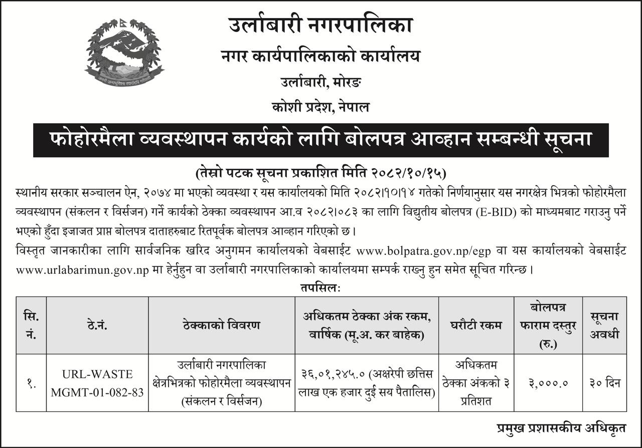 » फोहोरमैला व्यवसथापन कार्यका लागि बोलपत्र आव्हान सम्बन्धी सूचना ।