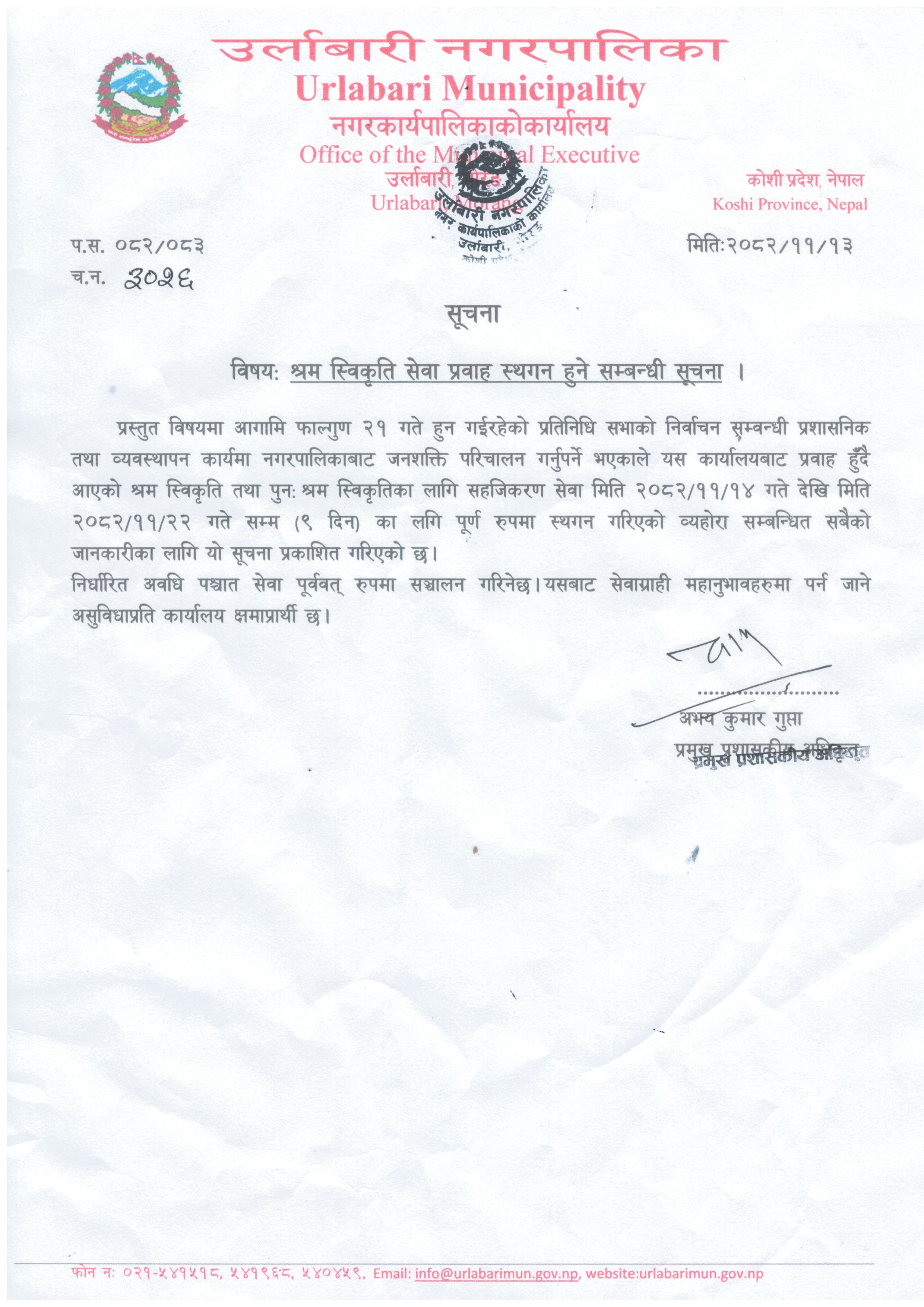 » श्रम स्विकृति सेवा प्रवाह स्थगत हुने सम्बन्धी सूचना ।