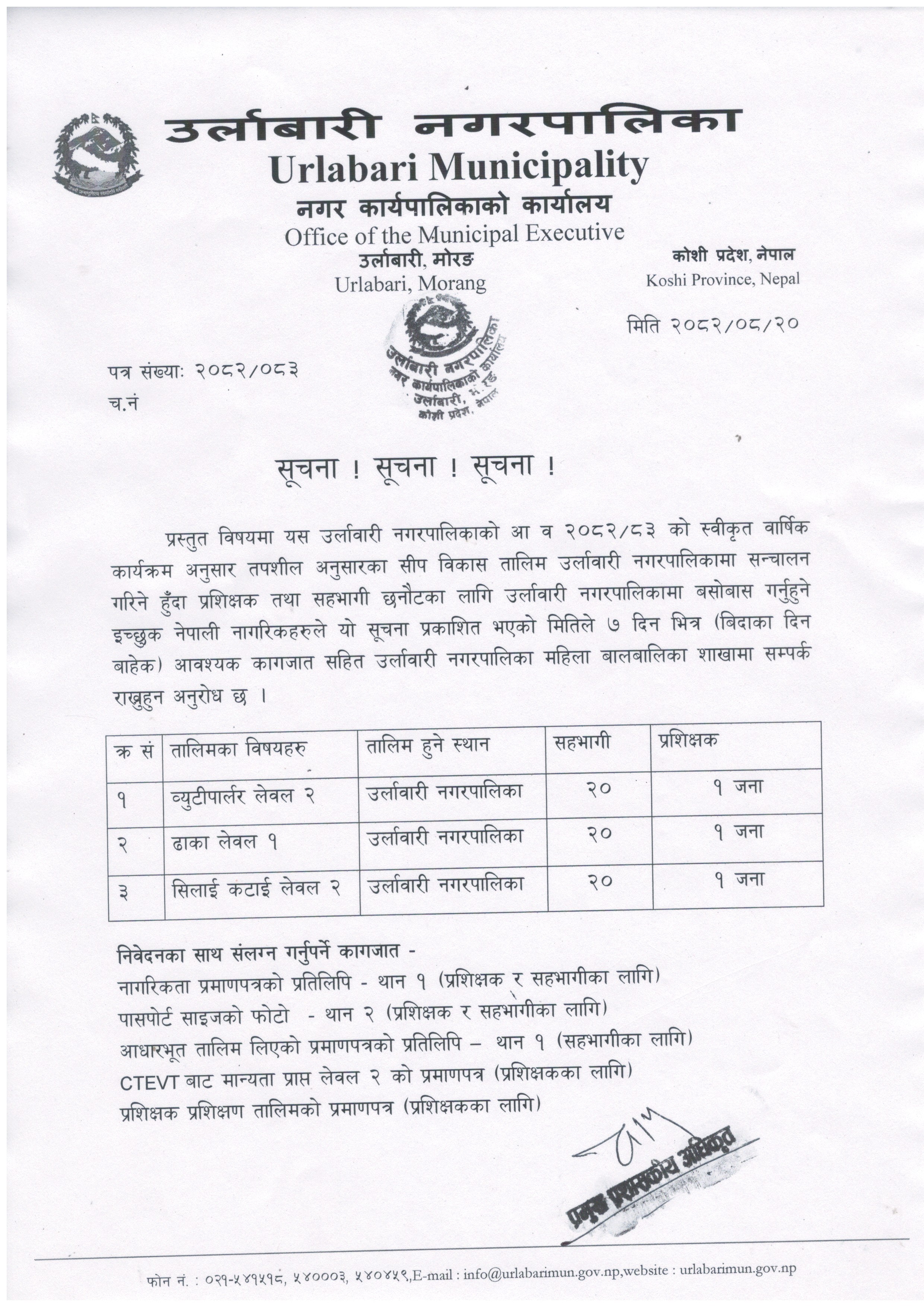 उर्लाबारी नगरपालिकाको आ .व. २०८२/०८३ को योजना तथा कार्यक्रमहरु
