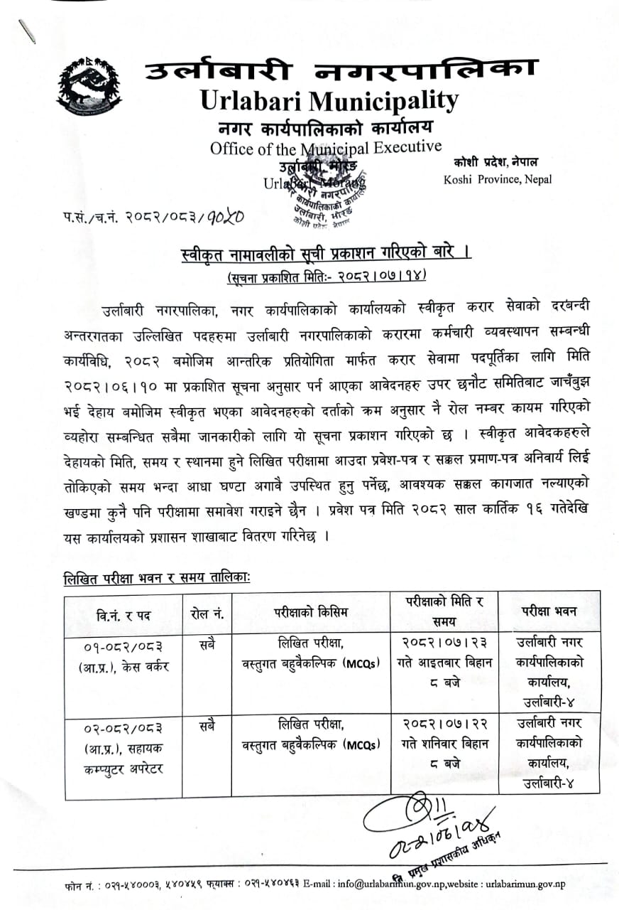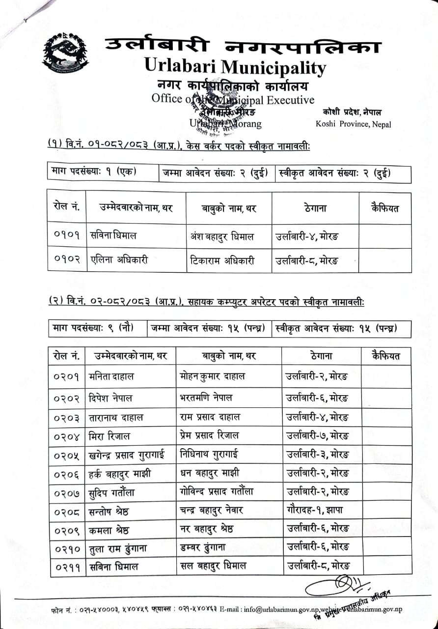 स्वीकृत नामावली प्रकाशन गरिएको सूचना ।