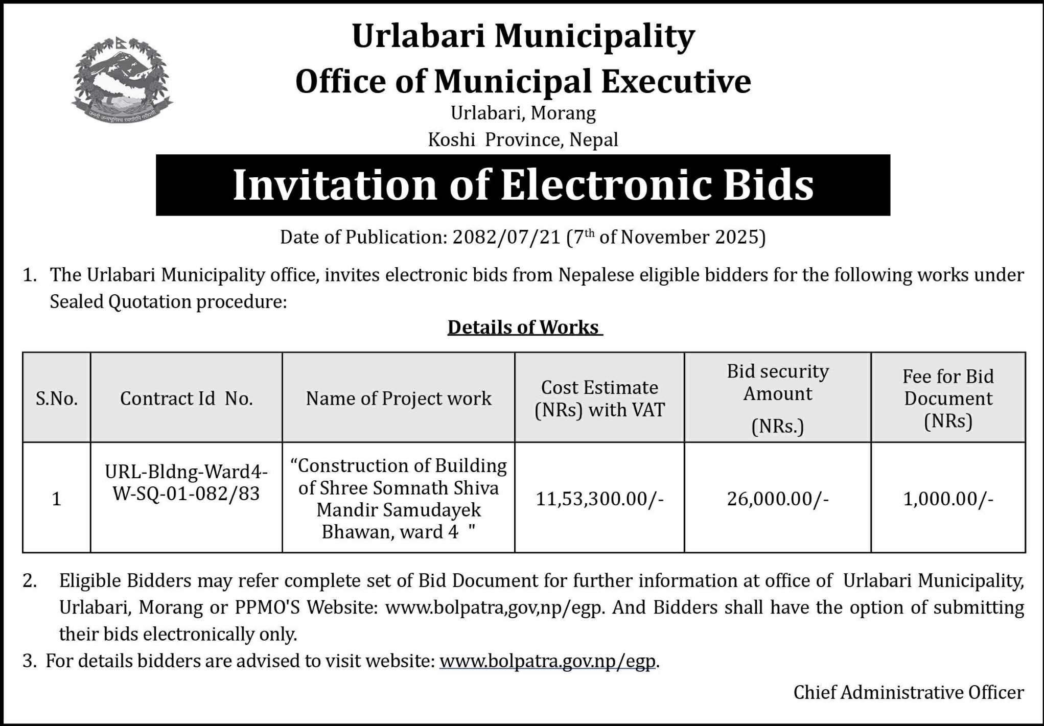 Date of Second Publication (“Construction of Building of Shree Somnath Shiva Mandhir Samudayek Bhawan, ward 4)
