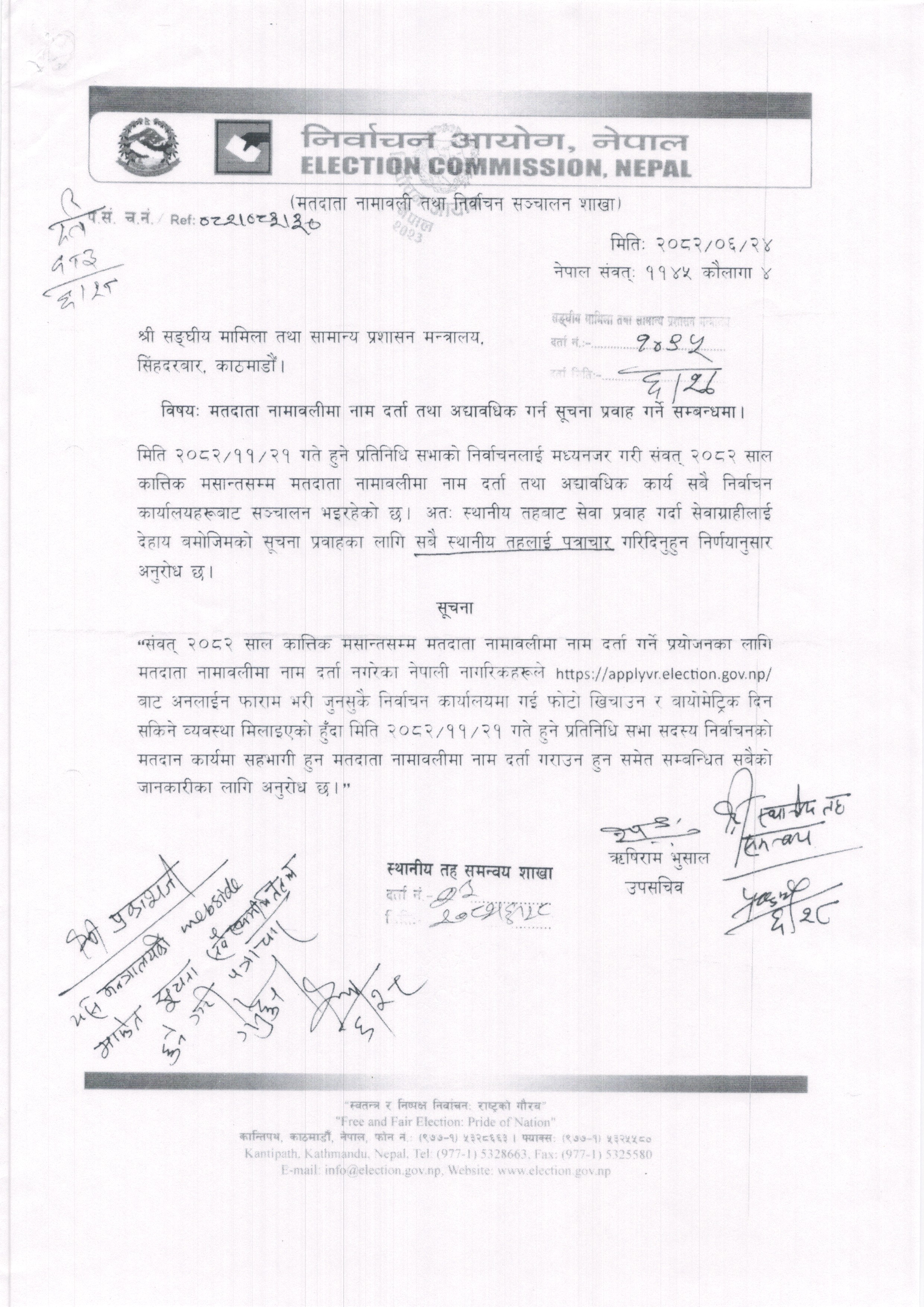 मतदाता नामावलीमा नाम दर्ता तथा अद्यावधिक गर्न सूचना प्रवाह गर्ने सम्बन्धमा ।