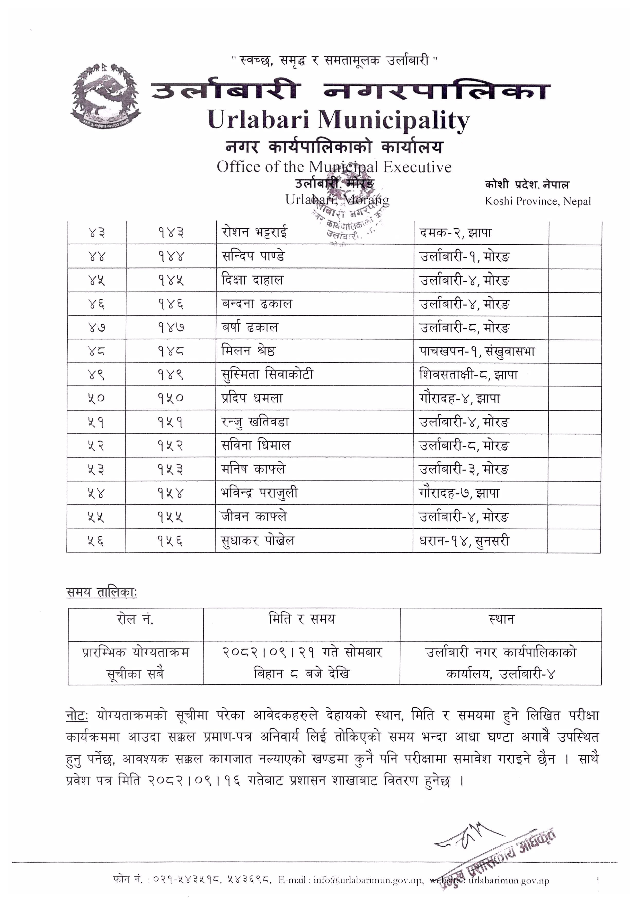 Urlabari Municipality, Office of the Municipal Executive