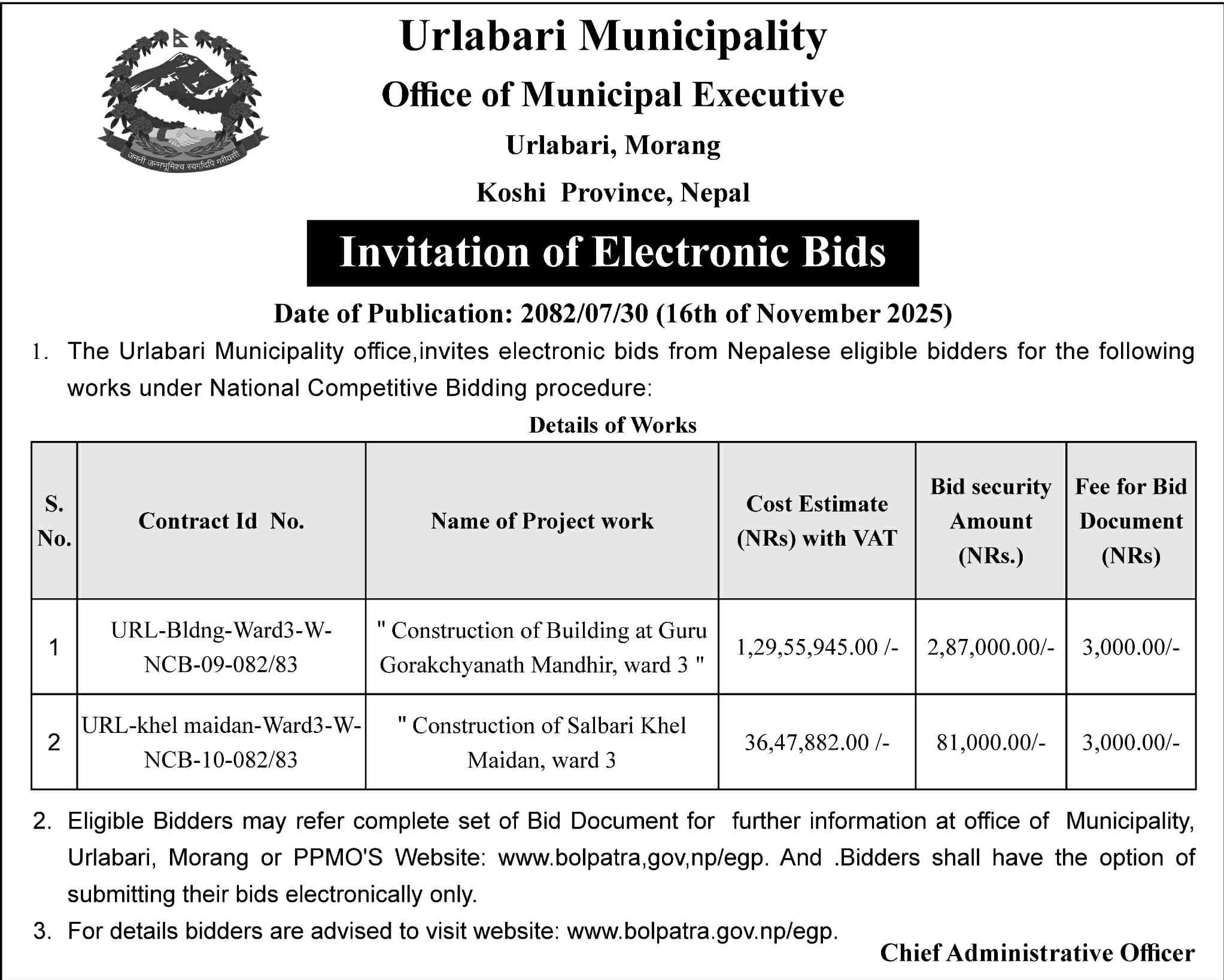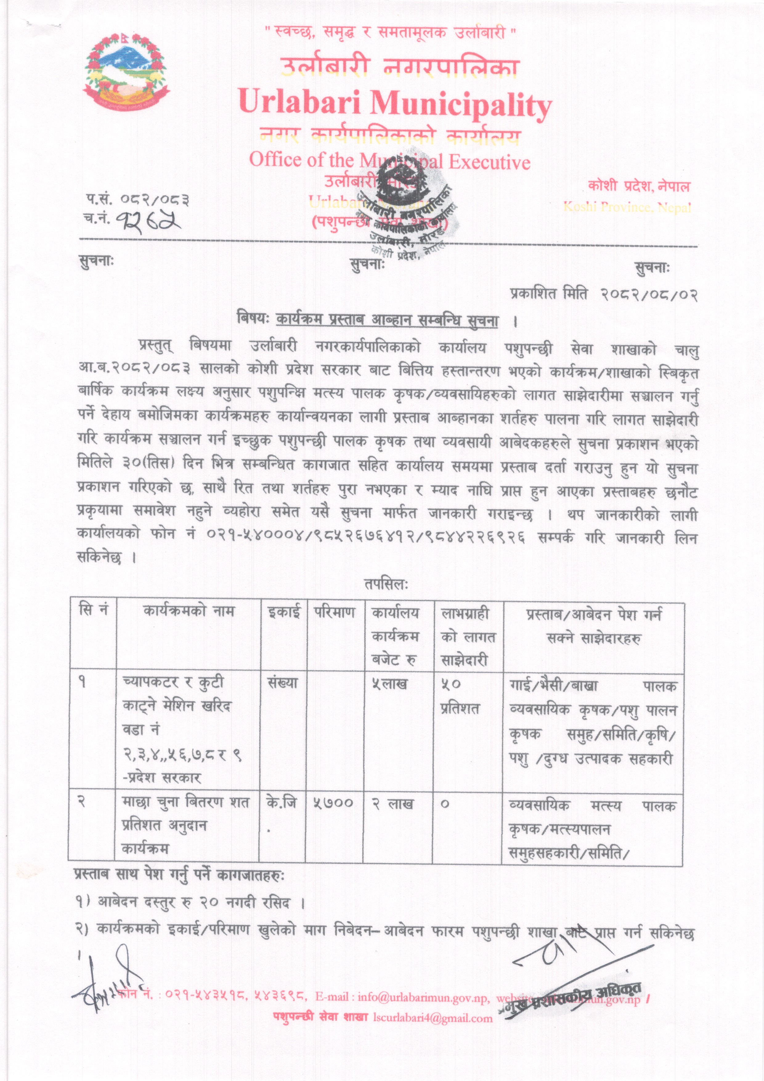 उर्लाबारी नगरपालिकाको आ .व. २०८२/०८३ को योजना तथा कार्यक्रमहरु